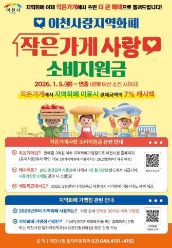 시는 2025년 12월 중 2026년 이천시 지역화폐 운영 개편안에 대해 지역화폐 운영위원회 심의·의결을 완료했으며, 시민과 소상공인이 개편 내용을 쉽게 이해할 수 있도록 다양한 홍보를 병행할 계획이다.