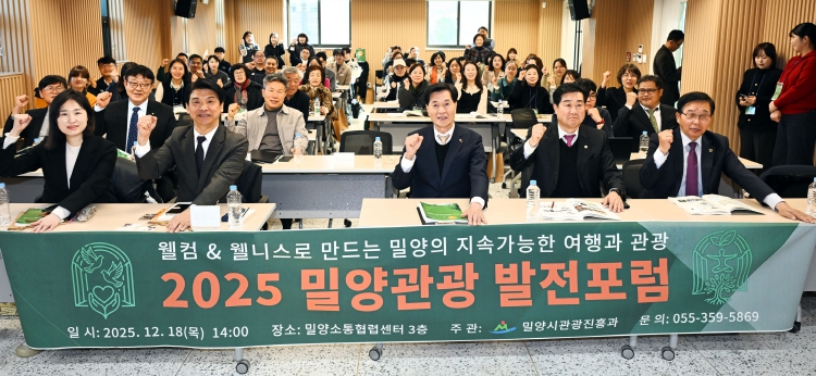 2025 밀양관광 발전포럼은 환대와 치유 기반 지역 관광산업의 지속가능성과 차별화를 위한 방향을 설정하는 자리로, 밀양시의회, 관광협의회, 관광업계 종사자, 문화관광 관련 기관 등 60여 명이 참석했다.