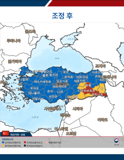 외교부는 앞으로도 전세계 치안 및 재난 상황 등을 예의주시하면서 여행경보를 수시 조정해 나갈 계획이라고 전했다.