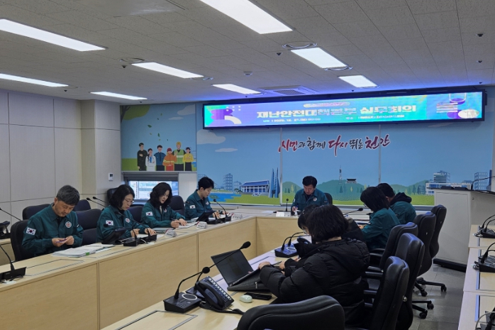 ![]() 1. 천안시가 지난 21일 시청 농업환경국장실에서 재난안전대책본부 상황판단회의를 열고 대응 상황을 점검하고 있다. |