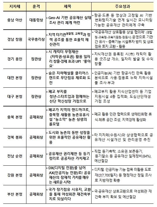 ![]() 「2025년 공유재산 우수사례」선정 현황 (10건) |