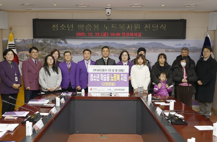 신안군은 지난 22일, ㈜바다운수 이송운 대표의 후원으로 마련된 학습용 노트북 27대를 관내 청소년들에게 전달하는 기탁식을 가졌다.