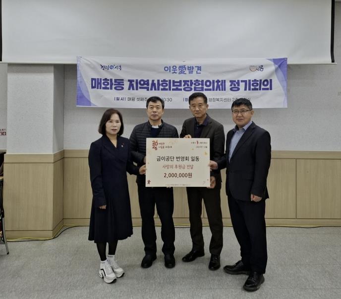 한편, 금이공단 번영회가 기탁한 후원금은 시흥시 1%복지재단에 지정 기탁돼 지역사회보장협의체 사업과 관내 취약계층 지원에 사용될 예정이며, 하우스업이 전달한 후원품은 매화동 내 한부모 가정 등 저소득 취약계층에 전달될 계획이다.