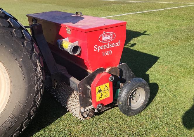기존 보유 중인 켄터키블루그라스 종자(200KG)를 활용한 인터시딩(종자삽입법)을 통해 구장 전면에 덧파종 후 USGA기준으로 조성된 김천종합운동장의 지반구조에 맞는 모래의 규격을 조사하여 잔디 표면에 배토하는 물리적 공법도 교차하여 시행했다.