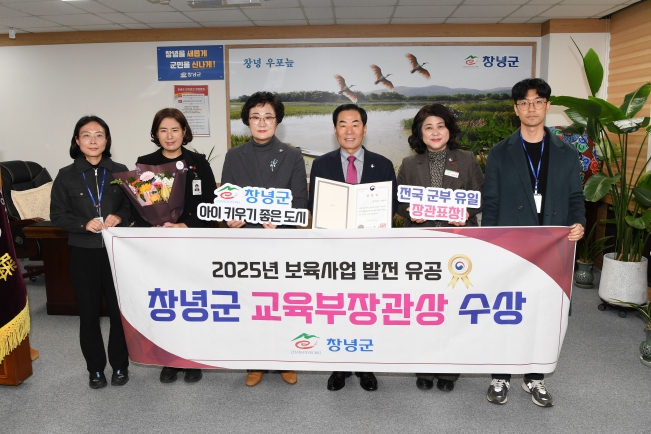 ![]() 창녕군, 2025년 보육사업 발전 유공 지자체 부문‘장관표창’수상을 기념하여 성낙인 창녕군수와 기념촬영 중이다. |