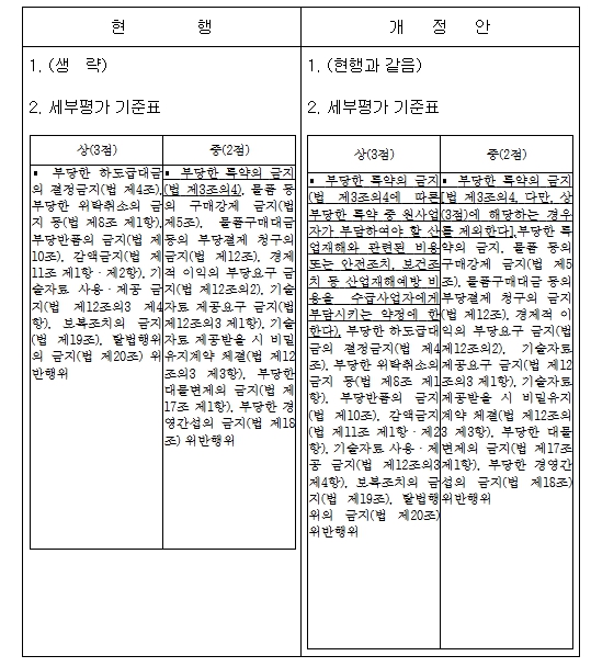 이번 「하도급법 과징금 고시」 개정안은 산업재해와 관련된 비용을 수급사업자에게 전가하는 부당특약에 대한 과징금 부과수준을 상향하여 원사업자의 산업재해예방 및 안전관리 의무를 강화하려는 것이다.