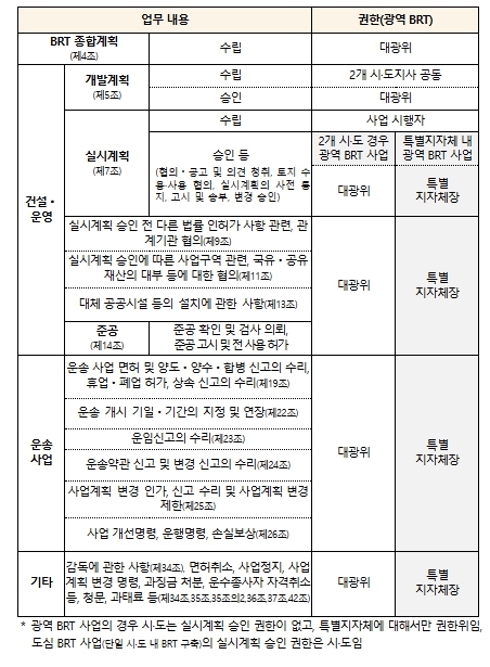 ![]() 광역 BRT 특별지방자치단체 권한위임 세부 내용 |