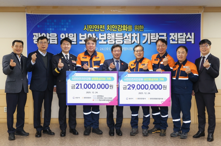 ![]() 광양시, 보안·보행등 설치 기탁금 전달식 개최 |