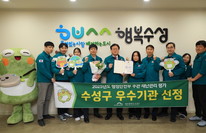 이번 평가에서 수성구는 전국 340개 재난관리책임기관 가운데 우수등급을 받아 지자체 우수기관으로 선정됐으며, 이에 따라 행정안전부 장관상을 수상하고 특별교부세 등 각종 인센티브를 받게 됐다.
