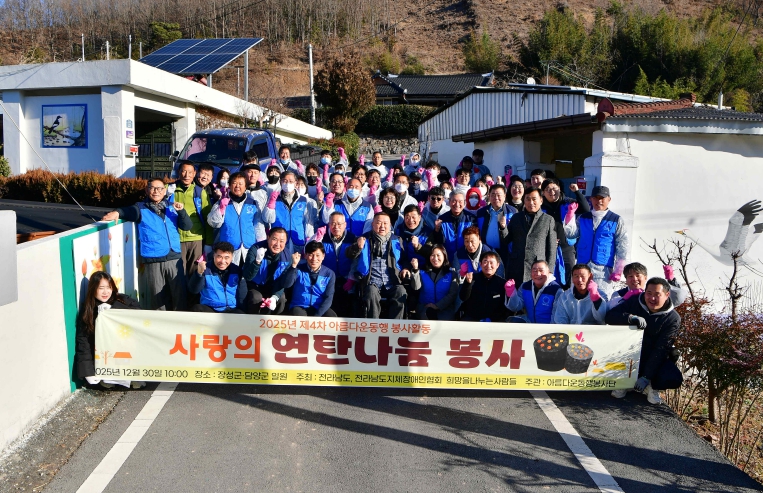 ![]() 30일 오전 (사)전남지체장애인협회 회원 등 100여 명이 연탄 1200장을 장성읍·황룡면 소재 저소득 가구 5곳에 전달했다. |