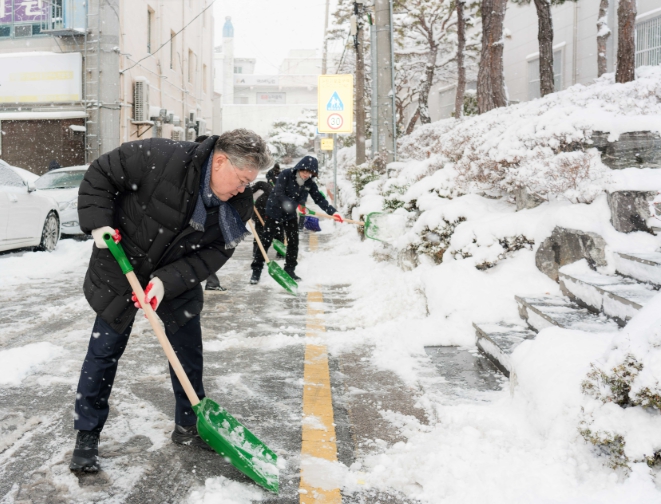 그러나 여전히 많은 눈이 남아 있어, 이날 오전 장세일 군수와 안전관리과를 비롯한 군청 직원들이 다시금 주요 시가지에서 제설 작업을 이어갔다.