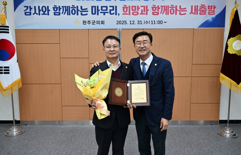 ![]() 완주군의 김재천 부의장, 「대한민국 지방의정봉사상」 수상 |
