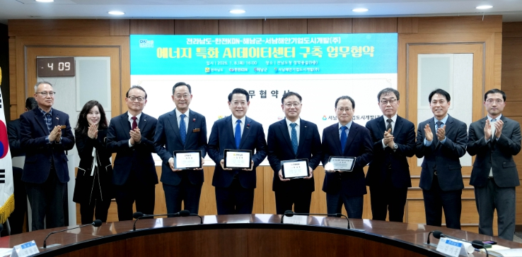 협약식은 김영록 전남도지사, 박상형 한전KDN 사장, 명현관 해남군수, 김대한 서남해안기업도시개발㈜ 대표가 참석한 가운데 진행됐다.