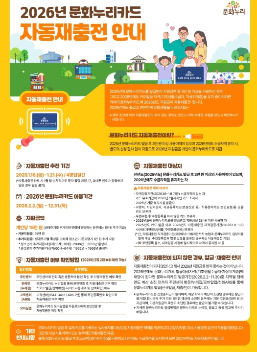 ![]() 2026년 문화누리카드 자동재충전 |