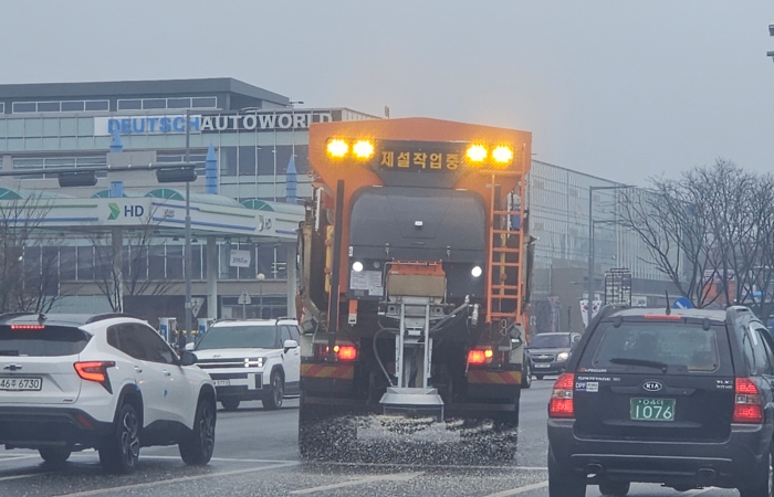 ![]() 수원시가 10일 오후 제설차를 이용해 도로 제설 작업을 하고 있다. |