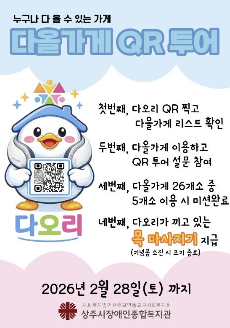 이번 ‘다올가게 QR 투어’는 주민들이 일상 속 상가를 직접 방문하고 QR코드를 통해 체험하는 체험형 캠페인으로, 무장애 환경의 필요성과 가치를 자연스럽게 알리고자 마련됐다.