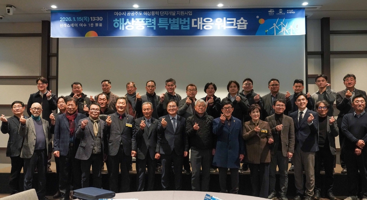![]() 여수시는 지난 15일 수정동 신라스테이 여수에서 해상풍력 특별법 대응 워크숍을 개최했다. |