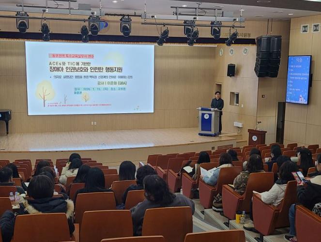2025학년도 경북동부권역(포항, 영덕, 울진, 청송, 울릉, 포항명도학교) 유·초·중·고, 특수학교에 소속된 특수교육지원인력(특수교육실무사) 약 90여명을 대상으로 실시된 연수는 특수교육지원인력의 역할 및 심리 역량 강화를 통하여 전문성을 향상시키기 위해 마련됐다.