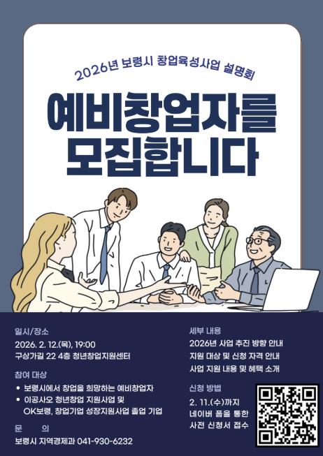 보령시 창업육성사업은 창업 아이디어를 보유한 참여자가 교육–검증–사업화 단계를 통해 성장할 수 있도록 설계된 사업이다. 창업교육과 사업계획 고도화 과정을 거쳐 창업경진대회를 통해 우수 창업팀을 선발하며, 선발된 팀에는 최대 2천만 원 규모의 사업화 자금과 함께 전문 멘토링, 엑셀러레이팅 프로그램이 연계 제공된다.