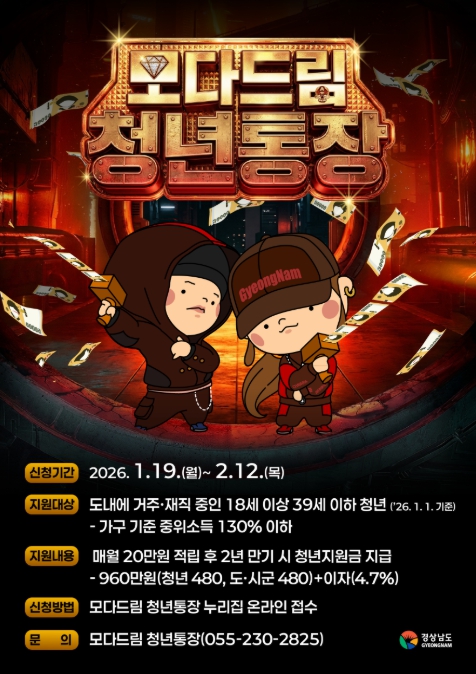 ‘모다드림 청년통장’은 도내 사업장에서 일하는 18세에서 39세까지의 청년을 대상으로 매월 20만 원씩 2년간 적립하면 경남도와 시군이 480만 원을 지원해 이자까지 최대 985만 원의 목돈을 마련할 수 있도록 돕는 사업으로, 2023년부터 시행되고 있다.