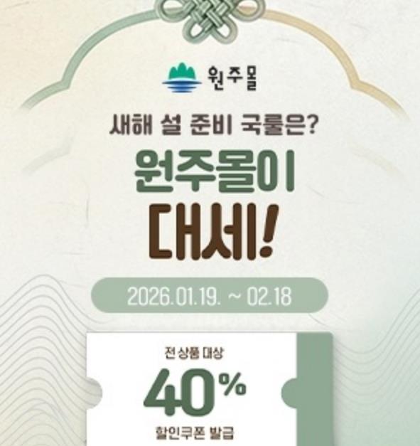 행사 기간 동안 원주몰 회원을 대상으로 40% 할인 쿠폰이 발급된다. 해당 쿠폰을 사용해 1만 원 이상 구매 시 최대 2만 원까지 할인받을 수 있으며, 원주몰 내 모든 상품에 적용 가능하다.