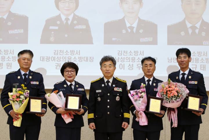 그리고 그동안 투철한 사명감과 봉사정신으로 지역 안전문화 정착에 공헌한 이미숙 전 여성연합회장, 이영원 전 어모남성의용소방대장, 권주희 전 대광여성의용소방대장, 이성우 전 대덕남성의용소방대장, 박규태 전 남면남성의용소방대장 5명에게 공로패를 수여했다.