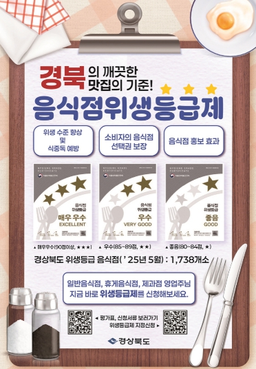 한편, 음식점 위생등급제에 대한 자세한 사항은 식품안전나라 홈페이지 또는 식품의약품안전처, 영주시보건소 보건위생과 식품정책팀으로 문의하면 된다.