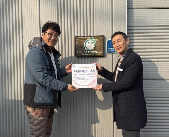 ![]() 나주시가 (사)농어촌정보화전남협회를 치매극복선도단체로 지정하고 현판을 전달했다. |