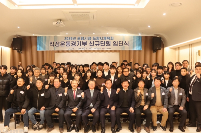 ![]() 포항시와 포항시체육회는 20일 라메르웨딩에서 ‘2026년 포항시 직장운동경기부 입단식’을 개최했다. |