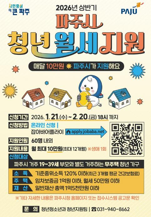 ![]() 파주시, 청년 월세 지원 확대… 연 최대 120만 원 지원 |