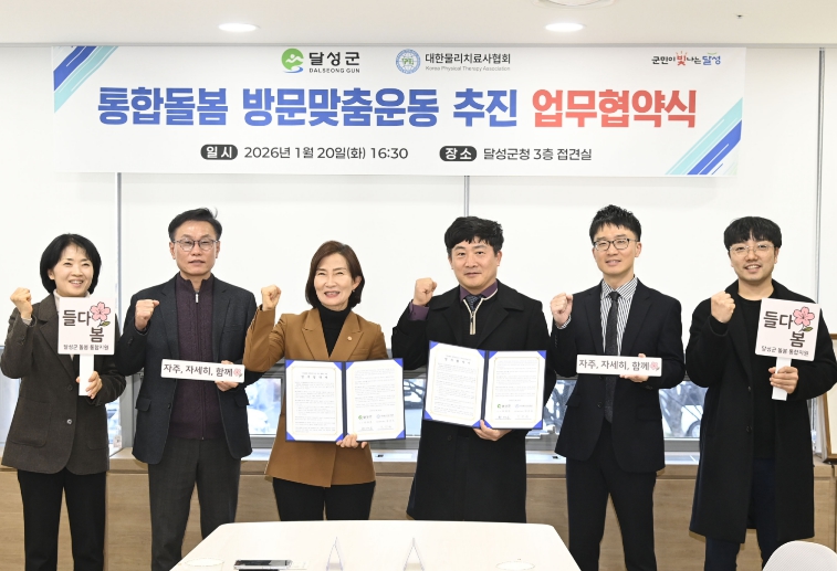 달성군은 시범사업을 추진하며 예방적 돌봄의 중요성을 느끼고 (사)대한물리치료사협회 대구시회와 업무협약을 체결했다.