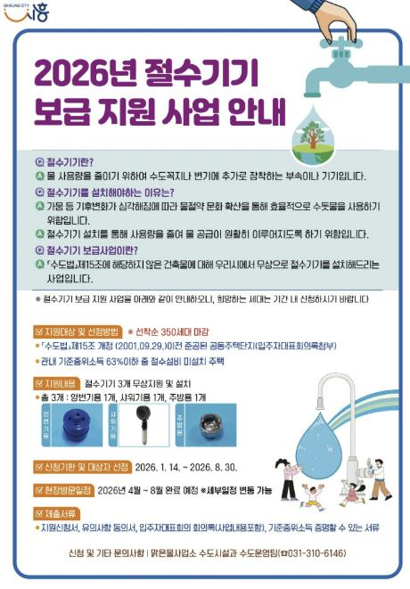 ![]() 2026년 절수기기 보급 지원 사업 포스터 |