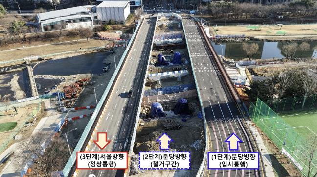현재 추진 중인 2단계 공사는 기존 분당방향 교량을 철거하고 새로운 교량을 건설하는 과정으로, 시는 이를 2026년 7월까지 마무리해 분당방향을 우선 개통할 계획이다.