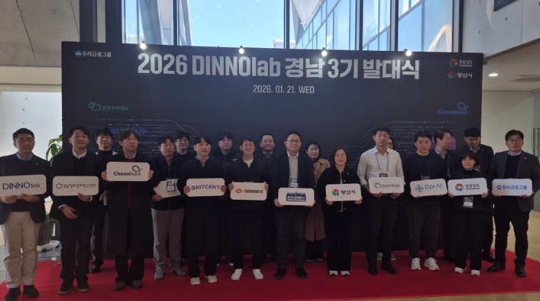 한편, ‘디노랩’은 우리금융그룹 스타트업 발굴 및 육성 프로그램으로, 수도권 센터(성수, 관악), 경남 센터(양산), 부산 센터(부산동구), 충북 센터(청주), 전북 센터(전주), 베트남 센터(하노이) 총 7개를 운영 중이다. 경남센터 3기로는 ▲브릿센트 ▲써모아이 ▲오션스바이오 ▲옵트에이아이 ▲케미폴리오 ▲페텔 ▲한국주택정보 7개사가 선발됐으며, 입주공간과 투자유치 등을 지원받는다.