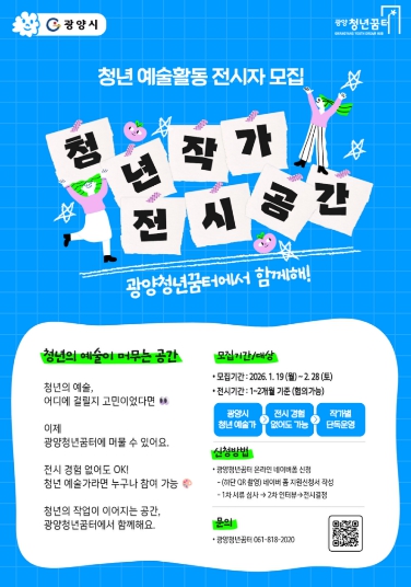 ![]() 광양시 광양청년꿈터 내 청년 작가 전시 공간 운영 본격화 - 청년일자리과(포스터) |