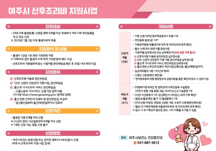 ![]() 여주시, 2025년 산후조리비 지원사업 안정적 운영 |