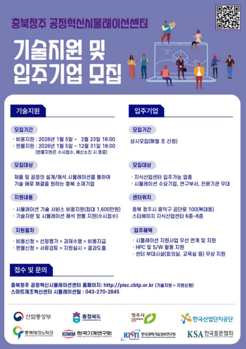 ![]() 충북청주 공정혁신시뮬레이션센터 기술지원 및 입주기업 모집 |