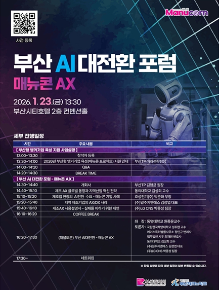 행사 후반부에는 '부산 AI대전환 – 매뉴콘 AX'를 주제로 한 산·학·연·관 전문가 패널토론이 진행된다.