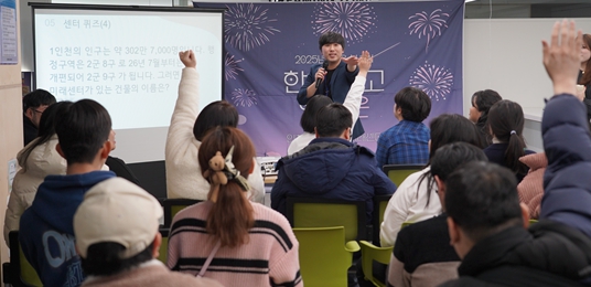 ![]() 인천시청년미래센터가 지난해 말 마련한 송년모임에서 고립은둔청년들이 퀴즈 프로그램에 참여하고 있다. |