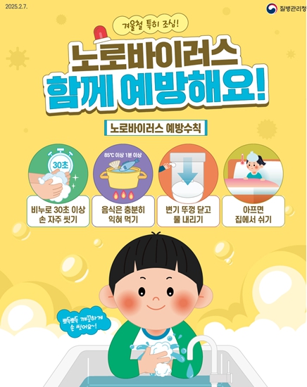 또한, 노로바이러스 감염증 환자는 △증상이 사라진 후 48시간까지 등원·등교 및 출근 자제 △화장실을 비롯한 생활공간 구분 △배변 후 물을 내릴 때 변기 뚜껑을 닫아 비말로 인한 노로바이러스 확산을 차단하도록 해야 한다.