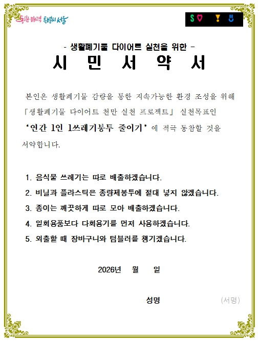 ![]() 생활폐기물 다이어트 실천을 위한 시민서약서 |