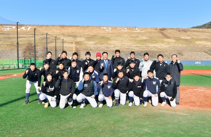 ![]() 김한종 장성군수가 27일 원주고 야구 선수단이 동계 전지훈련 중인 장성호 체육공원을 찾았다. |