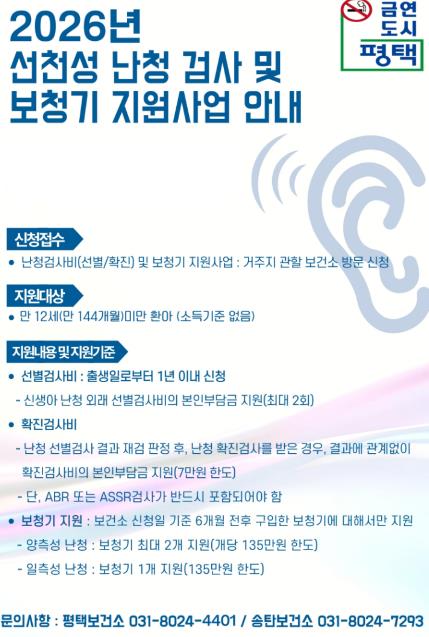 ![]() 평택시, 12세 미만까지 보청기 지원 확대 |