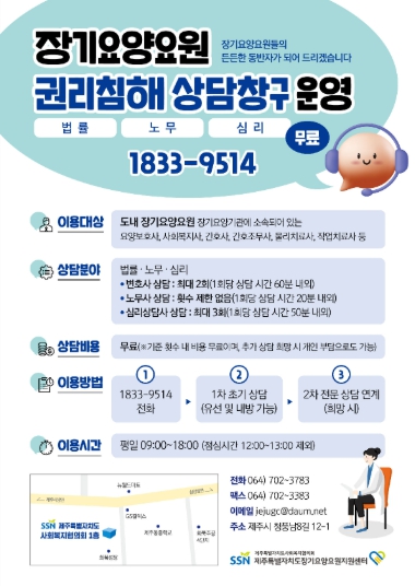 제주도는 이들이 현장에서 겪는 고충을 신속하게 상담하고 지원하기 위해 장기요양요원지원센터를 통해 전용 상담 창구 ‘시시콜콜’을 도 단위 최초로 마련했다.