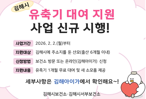 ![]() 김해시, 2월부터 ‘유축기 대여 지원’ |