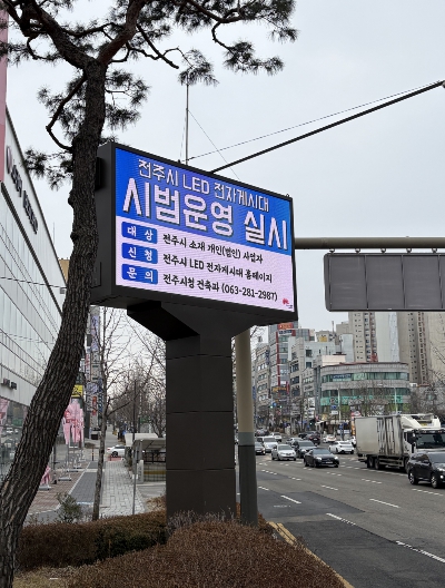 시는 지역 소상공인의 다양한 광고 매체 활용을 지원하기 위해 완산구 통일광장사거리(2024년 12월 설치)와 덕진구 화개네거리(2025년 6월 설치)에 LED 전자게시대를 설치했으며, 올 연말까지를 시범운영기간으로 정하고 매일 오전 6시부터 밤 12시까지 하루 18시간 동안 LED 전자게시대를 운영하고 있다.