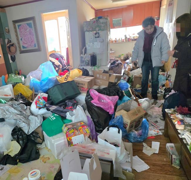 ![]() 생활 폐기물이 정리되지 않은 가구 방문 모습 |