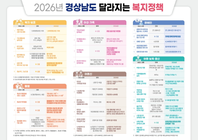 김영선 경남도 복지여성국장은 “2026년 복지 시책은 도민이 직접 체감할 수 있는 직접지원을 확대해 도민 생활안정에 초점을 맞췄다”며 “복지급여 등 각종 시책이 적기에 시행되어, 성과가 도민의 피부에 와닿을 수 있도록 최선을 다하겠다”고 말했다.