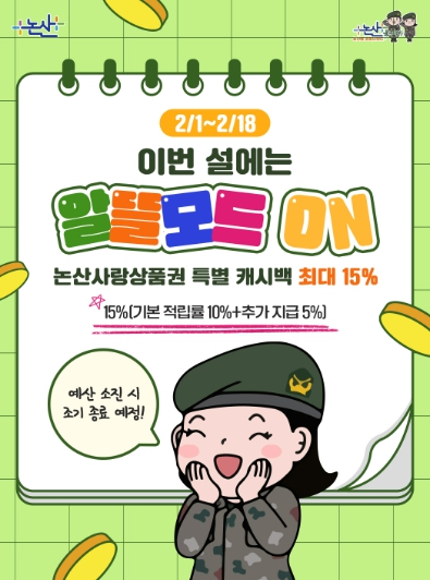 ![]() 설 명절 맞아 논산사랑상품권 특별 적립금(캐시백) 최대 15%제공 |