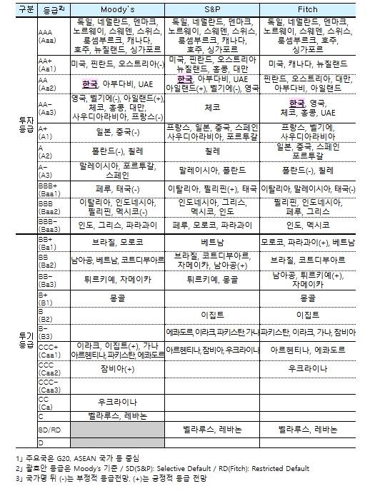![]() 주요국1」 국가신용등급 비교 ('26.1월 기준) |